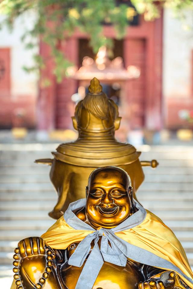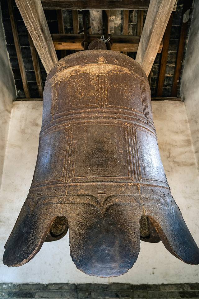 除去大佛本身,周边的摩崖题刻与庙宇也极其珍贵,尤其是明代王阳明的《登大伾山》诗作原迹,已成传世珍宝。大佛下的天宁寺,从北魏一路奔袭而来,走了一千五百余年。五代后周下诏灭佛,超九成寺院被破,它却得以幸免,还留下一块“准敕不停废记碑”,向世人透露着它崇高的地位。寺内藏一明代大钟,刻八卦图案,钟裙八瓣,敲击发音各不相同,人称“八卦幸运钟”,为天宁寺镇院之宝。