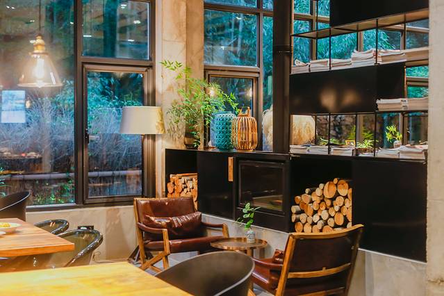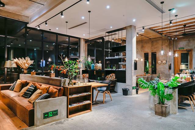 隐西为了给客人更开阔的空间,两栋楼都舍弃了整个一楼的房间,全部改作了公共区域,都自带前台、客厅、餐吧,既可互相串门,在这里你可以看书发呆、咖啡泡茶,还有不定期举行的体验活动。
