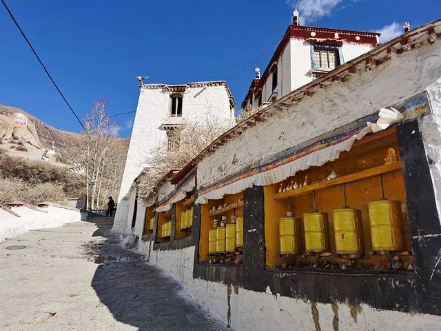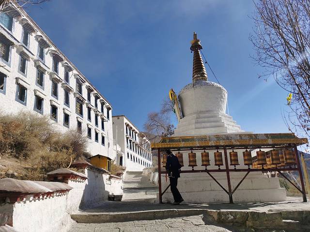 这里一定要提醒一下大家,我以为去哲蚌寺跟色拉寺一样,下了公交就到了,所以什么都没带,结果下了公交要走差不多20分钟到大门口,安检进门,然后要徒步爬山差不多要半个多小时才能到寺里,我是去过亚丁牛奶海的人,没有高原反应,平时也有锻炼,大家可以参考一下,记得一定要带热水,量力而行。