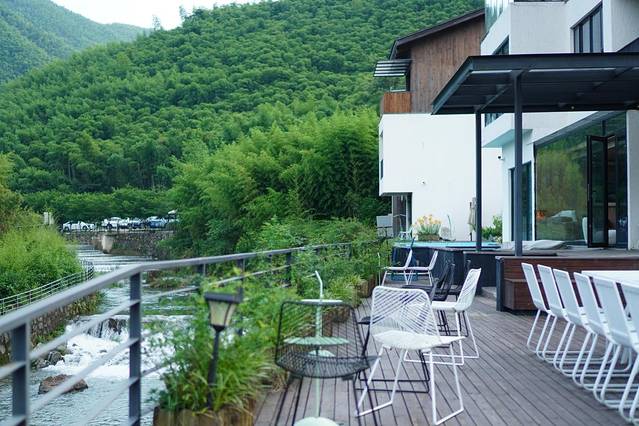 院子里的无边泳池和亲水平台也是听涧的特色,无论是点一杯咖啡坐在溪水边度过慵懒的午后,还是换身清凉的装扮,在泳池里畅游,但很惬意。趴在无边泳池上,溪水从身边穿过,远远望去,丛林山野