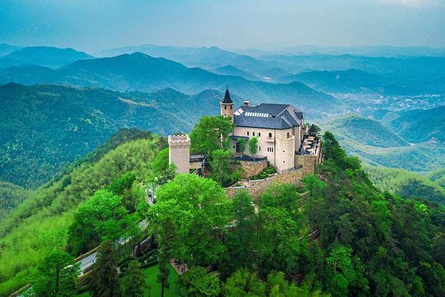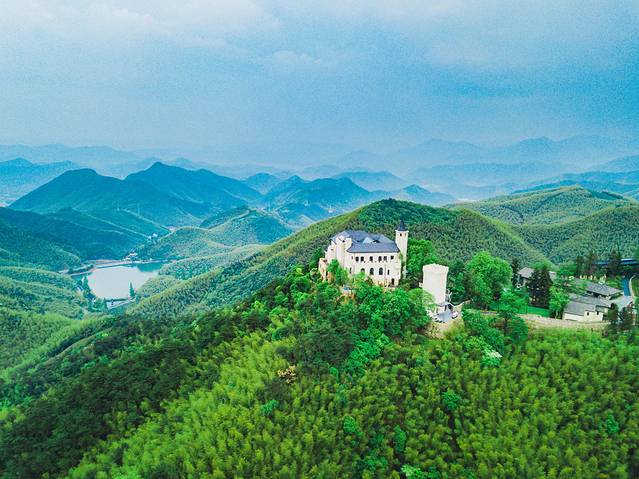 在景区还能看到不远处的裸心堡,许多人心心念念的苏格兰古堡游,现在不用远道去欧洲,在莫干山就能感受到,在青翠的竹林间,远远就能看到裸心堡的轮廓线,古堡、蓝天、青山……在这里,莫干山不仅仅是充满野趣的,它也有一种沉郁的贵族气质。