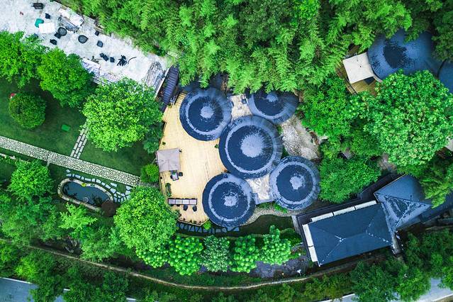 6间独立的圆顶夯土小木屋是云起琚独特的风景,高低之间错落有致,每一间都能望见不同的景色,适合人与自然诗意栖居。
