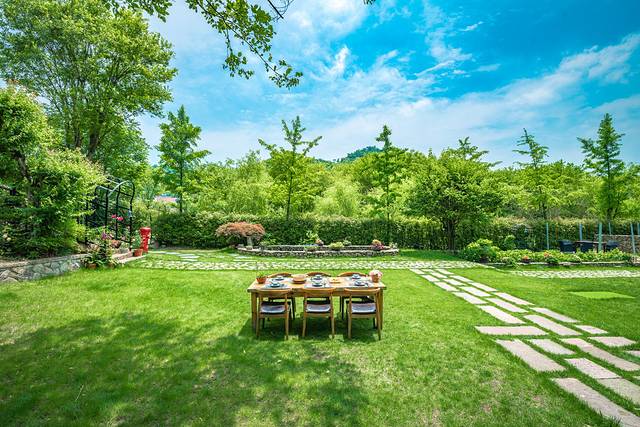 进门是一片碧绿又空旷的大草坪,无论是一场轰趴、一场草坪婚礼、又或是户外亲子时光,都非常不错!