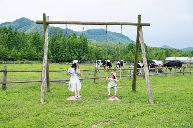 除了这些可爱的小动物们,整个牧场的设计都是简约的田园风,有一种想要在这里自由奔跑的畅快感,非常适合遛娃……