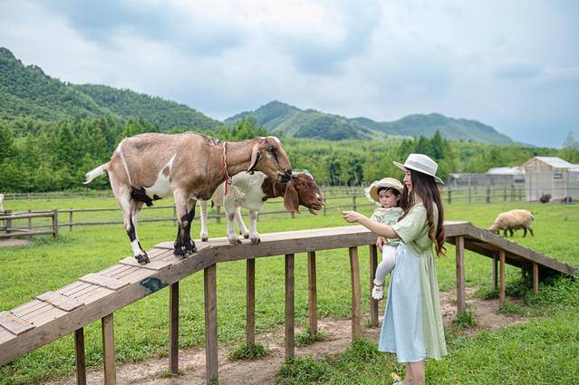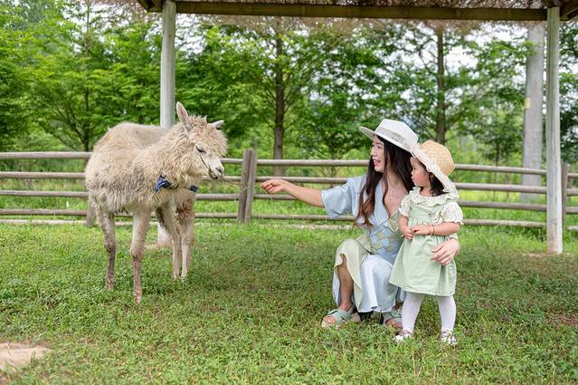 自由牧场有很多小动物,可以在门口每人领取一份干草,这是和动物们互动的“必需品”,也可以和小动物们零距离接触,莫名有种穿越到奈良喂小鹿的错觉。