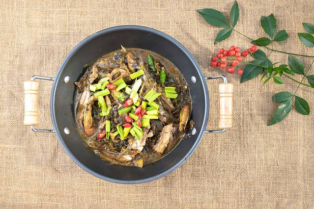 小溪杂鱼:山里有很多小溪流,里面有很多小鱼,味道非常鲜美,清蒸或红烧都是不错的选择。