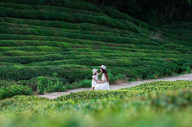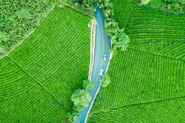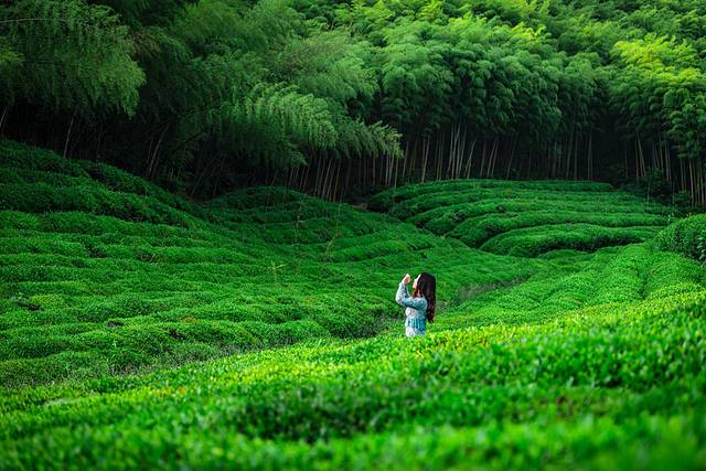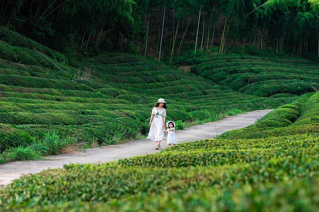 层峦叠嶂的竹海,密集陇翠的茶园,连车带人都进入了静音模式,除了风吹过竹林的沙沙声,就只有山间的溪流潺潺。