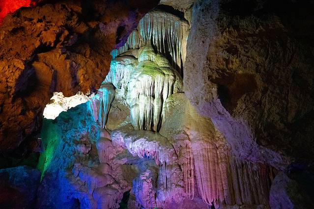 漂流的边上,就是有着17°恒温溶洞的天子洞,走进这里就像是时光隧道穿越时光的神奇,可以尽情领略大自然的鬼斧神工。