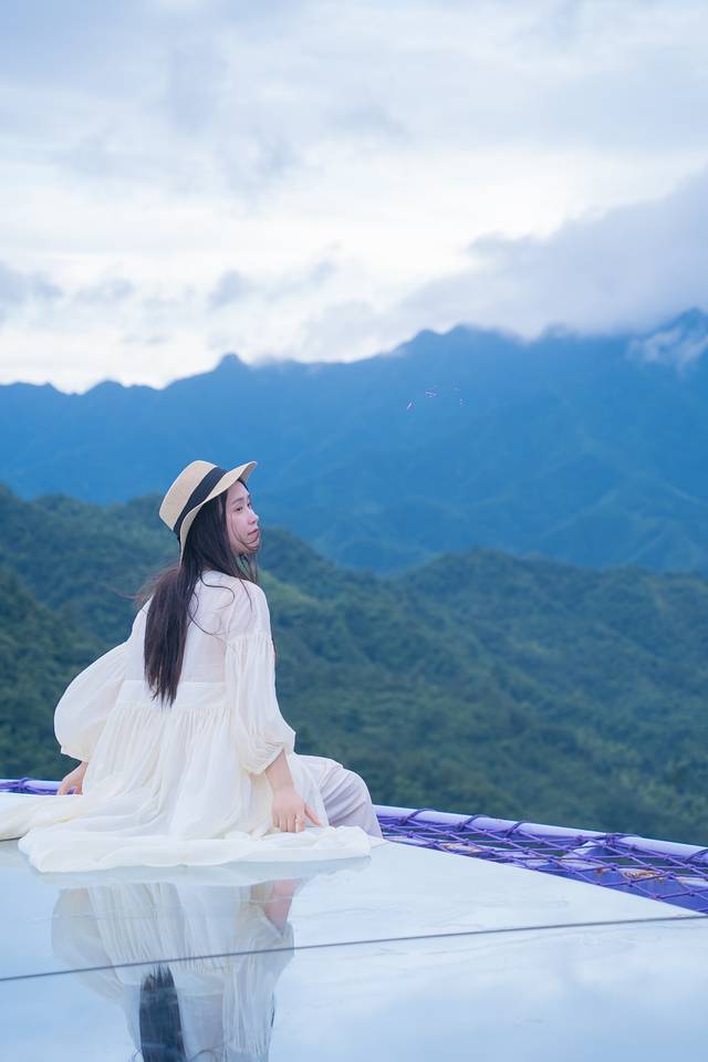 再往上爬,就到了建于高山峡谷间的天空之镜,巨大的圆形镜面,在蓝天白云青山绿水间,随手一拍就是刷爆网络的大片。天空之镜下,就是目前世界上面积最大的双层玻璃眺台——紫金花悬崖眺台,航拍看过去,就像怒放山谷间的那“万林丛中一点紫”,如梦如幻,喜欢拍照的一定不要错过这里。