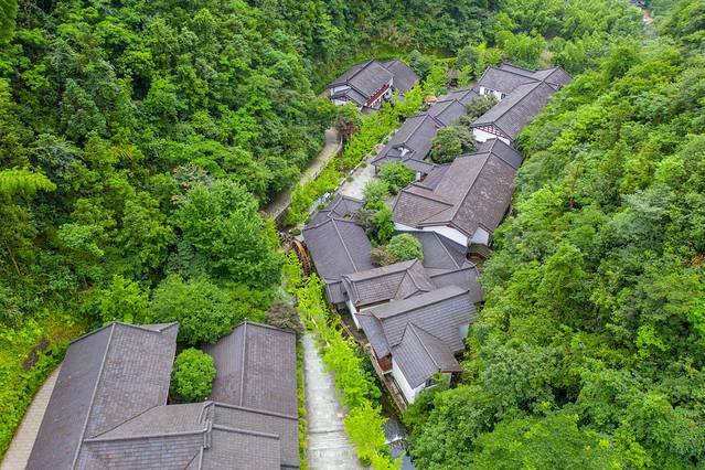 坐落在景区内的一家森林康养度假酒店,风格是那种江南水乡的感觉,古朴典雅,睡醒了第二天一早就可以去玩了,很方便。