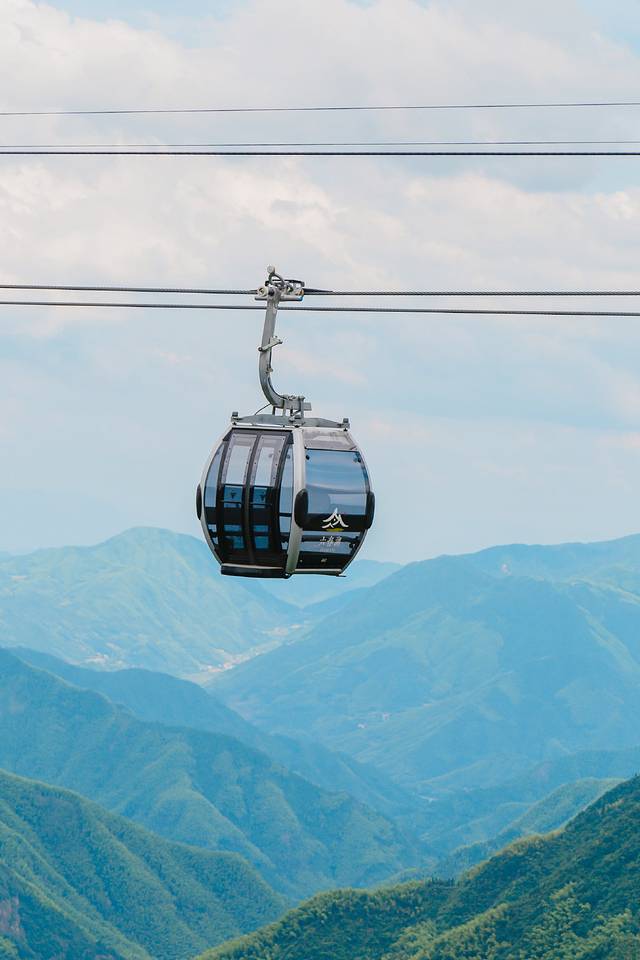 乘坐索道时,万里遥看皆豁渺,从高空俯瞰脚下的山峦起伏与竹海翻涌,山脉的形状清晰呈现在眼前,8.5分钟的单程,既有高空观景的紧张感,也有特殊视角下独有的美感。