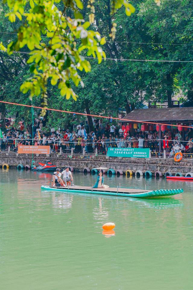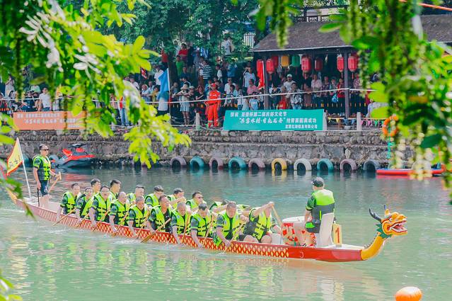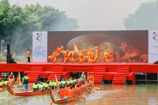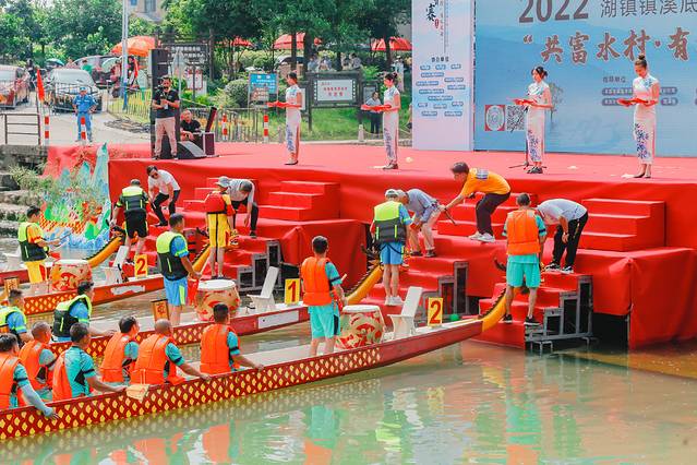 龙游县湖镇镇溪底杜村第二届民俗文化节——“共富水村 有礼龙舟‘抢青’大赛”,俗话说,“北人赛马,南人竞渡”,这里的南,遍及长江以南。民俗活动总是与本区域的人民生活息息相关。中国地域辽阔,人们生活在不同的山川河流,不同地域的古人在历史进程中,为龙舟赋予了不同的传说,活动在优美的百人旗袍秀和竹筏独舞《唐乐》等暖场表演中拉开帷幕,随后裁判员及参赛队员宣誓,并进行“点睛”仪式。
