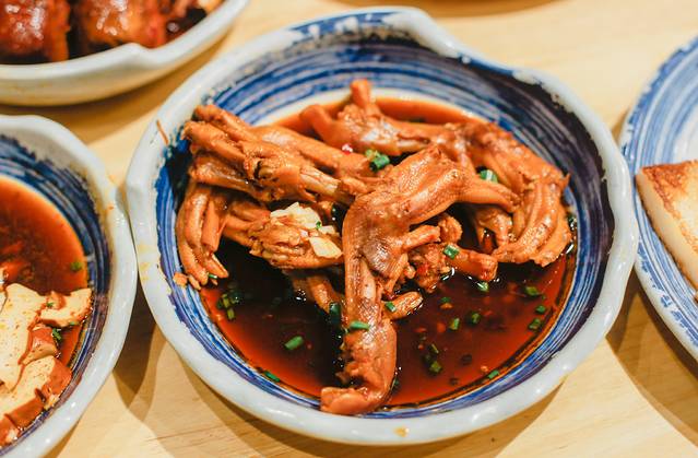 到龙游旅游,少不了品尝龙游的当地美食,一直以来,浙江美食给人的感觉都是平和清淡,很少有辛辣。但在龙游乃至整个衢州区域,“辣”才是这里美食的主导味觉。“三头一掌”是这里的代表性美食,这次我们吃的是王阿盖小吃:小吃集合连锁店,在这里可以吃到各种龙游小吃——鸭头、兔头、酱粿、芋头粽、葱花馒头、红糖麻糍、水晶糕.......通常晚饭时间还没到就开始排队了。
