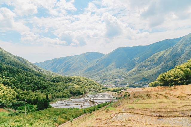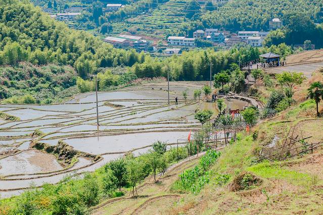 长生桥的梯田也是值得去的一个点,长生桥村后山可以看到路两边是一片翠绿的竹海和层层叠叠的梯田,十分壮观,绿意盎然,美景如画,在蓝天白云的映衬下,百亩梯田叠翠,满目葱绿。站在山顶远远望去,群峰环绕的梯田阡陌纵横、星罗棋布、错落有致,古村落与高峰、梯田、蓝天融为一体,相得益彰。
