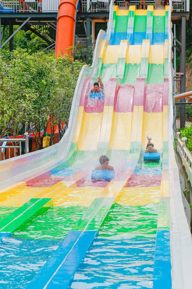 而如果想要感受最纯粹的水花激情碰撞,那么建议你把这里的水上游戏项目“打通关”,园内配备有彩虹滑梯、造浪池、超高速滑梯、螺旋滑梯、超大型儿童水寨、儿童组合滑梯、国标游泳池、长达2公里的玻璃水滑梯等多项水上游乐项目一扫夏季的热浪侵袭。