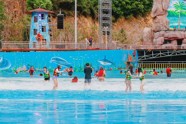 去水上乐园必打卡的造浪池,空间超大,不论什么时候,造浪池都里都是人人人!这里有刺激的造浪技术,让你体验在大海中随波飘摇的感觉,一重接一重的浪花拍打在身上仿佛还带有海风淡淡的咸味清爽、悠然,洗去高温带来的炎热简直不能更爽了,跟随音乐摇摆,做池子里最靓的仔,在清凉里近距离感受异国风情的演艺一起点燃夏日激情吧。