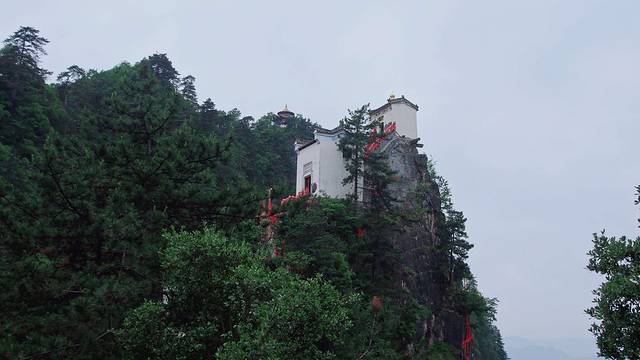 沿步道一路见到的轿顶山、滴水崖、驼背梁、飞天崖、打儿窝、北翅峰、观云台、玄谷台、望松台、问道台等景观,特别是金顶绝壁,无不是危崖兀立,峭壁巉岩,似刀劈斧砍,鬼斧神工。