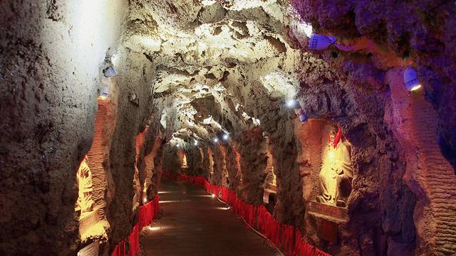 塔云山是道教名山,道家讲求长生不老,得道成仙,往往选择奇险近天之地修建道观。金顶观音殿,就建于塔云山万仞绝顶之上,三面悬于万丈深渊,可谓鬼斧神工,令人叹为观止,被称为“秦楚一柱,绝顶道观”。置身金顶,流云绕膝,松涛阵阵,香风扑面,犹在仙界。