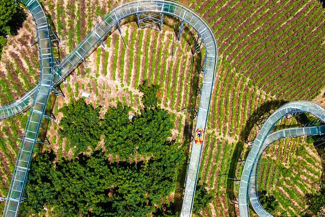 从名字中就可以感受到它的刺激!长达3.88公里的云端漂流,蜿蜒曲折盘亘在竹海之上,总落差足足有380米,从空中俯瞰宛若一条巨龙,气场十足。