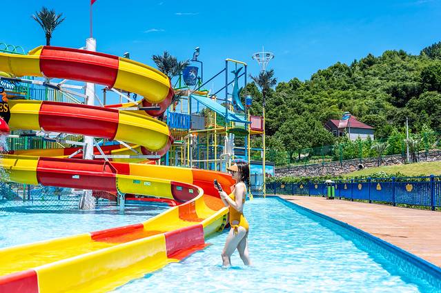 对于女孩子而言,这五颜六色的滑道,异域风情的海岛装饰物,本身就是一道风景线,穿上比基尼,凹一个最美最酷的造型,这也是一种对夏天的尊重。