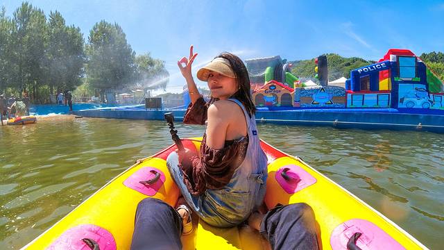 由于漂流滑道近4公里长,全程耗时大概需要20分钟,可想而知,时间越长带来的刺激感也是一环扣一环,激起的水花,打湿的衣服,整个人都是凉爽的,这才是夏天降温的最佳方式呀。