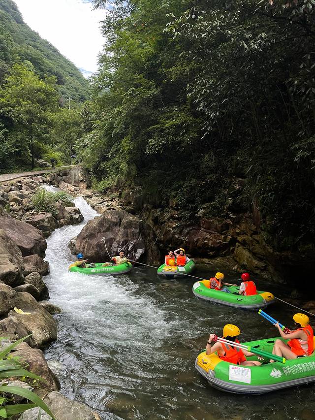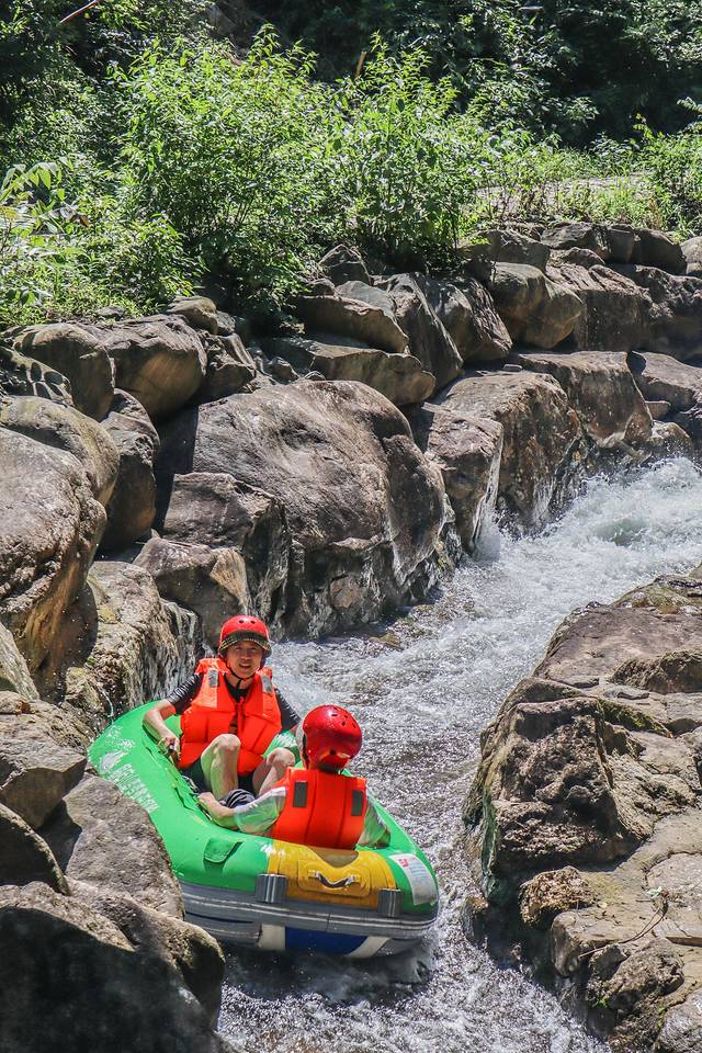 峡谷内水流湍急,清溪淙淙,蜿蜒盘旋,安全系数很高完全不用担心,操作简单,虽有惊但无险,乘橡皮舟穿流于翠岭幽谷之间,尽享峡谷漂流激情,尽享世外桃源之美景。
