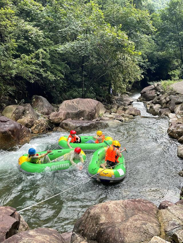 横冲直撞、激流勇进,皮艇极速穿梭在郁郁葱葱的山林中,湍急的水道、飞溅的浪花,绝对让你有种爽到爆的精彩体验!水流大时,速度很快,真有种“一泻千里”的感觉。