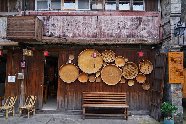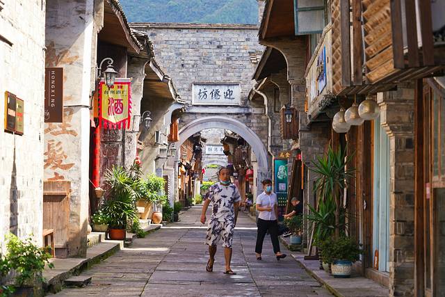 抬头是斗翘的屋檐,低头是青石板铺就的街道。走在窄窄的街巷,一步一景。古色古香的紫阳古街上,也融入了很多新元素。有国风的服装店、时尚的咖啡吧、小酒馆、手工坊,也有网红书店与适合归隐的民宿。