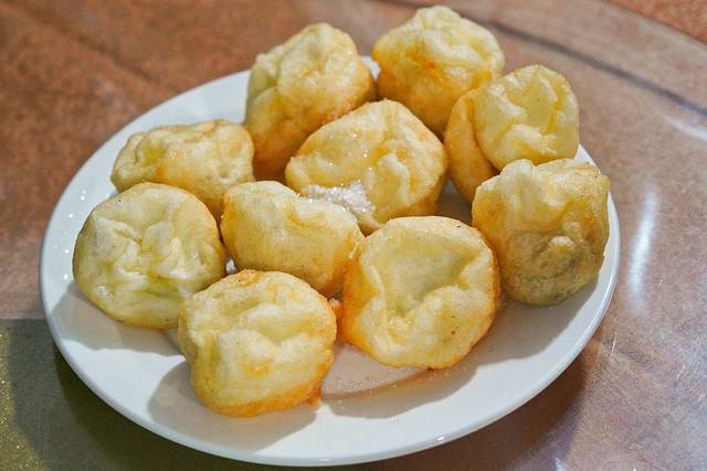 漫步紫阳古街,可以看到很多挂着“蛋清羊尾”标语的小店。名为蛋清羊尾,却与羊没有任何关系。蛋清羊尾是以鸡蛋清、熟猪油、鲜猪板油、豆沙和 干糯米、白糖、干淀粉为原料,经过高温油炸呈现羊尾吧的形状,因此而得名。蛋清羊尾也是一道临海当地的特色美食,入口香甜可口。如果想一口资格的蛋清羊尾,当然还得去白塔桥饭店。