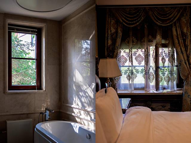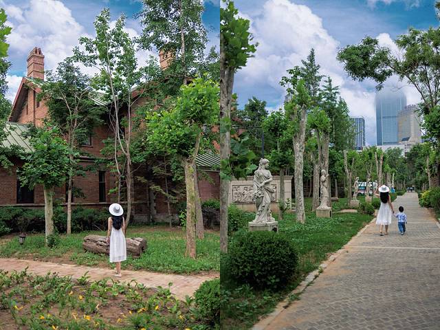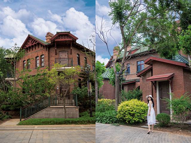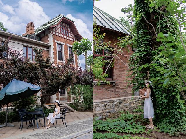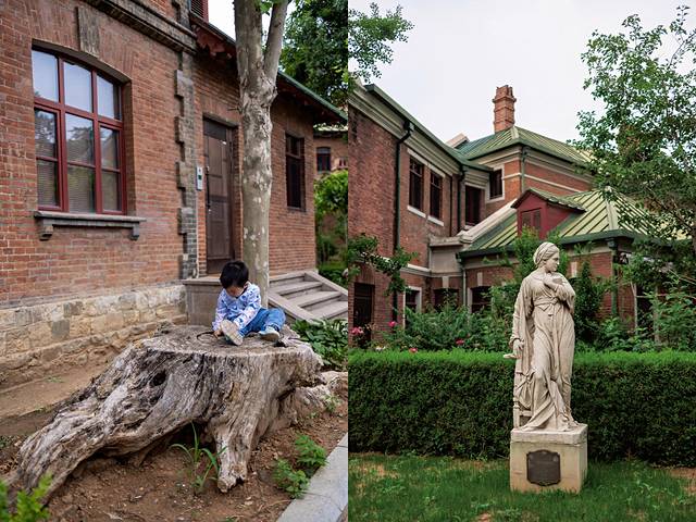 我们入住的酒店是铁道1896花园酒店,酒店始建于1896年,仿佛让人沉浸式感受大连的历史。28幢欧式别墅汇聚在一起组成了大花园,既有俄式风格,也有法式和日式风格。红砖墙,绿屋顶,大草坪,花朵在盛放。房间里油画、水晶灯、雕花柜子、厚重的窗帘,阳光透进窗户,树影森森,这触手可及的穿越之感。不少名人曾在这里居住,赵四小姐、蔡元培先生,夏目漱石……每一栋别墅门口的牌子上都写着历史故事。