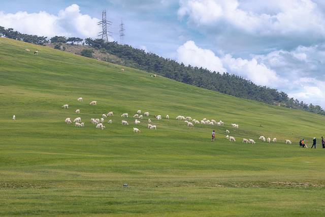 大连旅行,三寰牧场太令我惊喜了,一望无际的绿色草坪,起伏的丘陵,牛羊闲散成群走过,简直是小瑞士!家家户户在这里安营扎寨欢度周末,孩子在地上打滚奔跑,理想露营地。