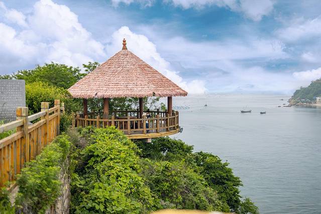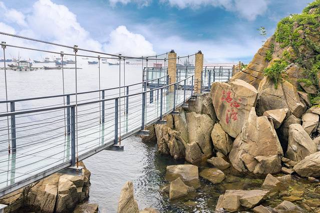 小水口景区还有水云亭,观光平台,站在观景台远眺,与之隔海相望的事出名的明珠双坨风景区,小岛镶嵌在大海中,像散落的珍珠一般。