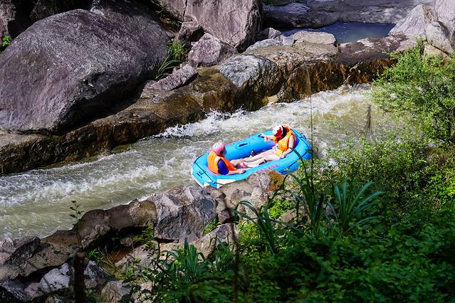 在都市生活久了,工作和生活的压力有些时候令人窒息,游玩中的一些刺激,可以放松紧绷的情绪,漂流是一项既安全又刺激的户外运动,可以体验到平时生活中体会不到的心跳加速的刺激。