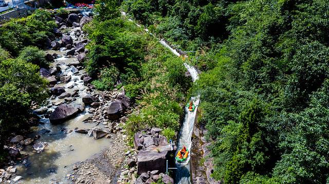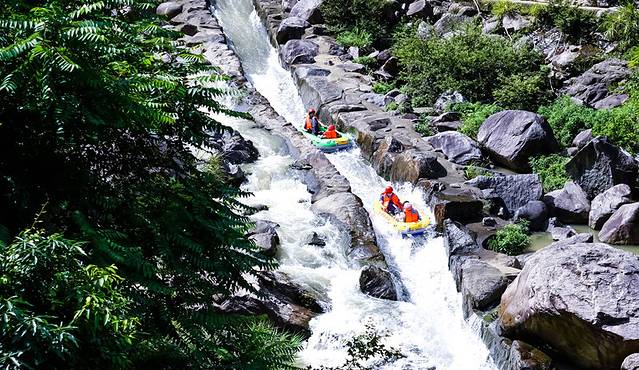虎啸峡激流探险漂流利用自身独特的自然优势-狭长的自然山谷,合理利用落差,形成了既有刺激的高落差,又有缓冲区可供玩水,动中有静,静中有动,使得整个漂流的体验感相当的好。