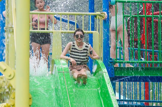 骄阳似火的天气,乐园里却处处清凉,到处充满了欢声笑语,在玩乐中、在清凉的戏水间,暑意全消。