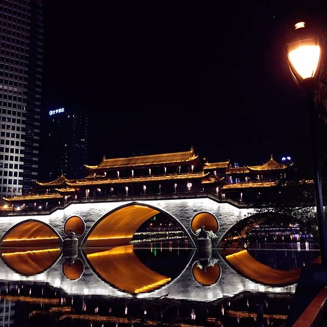 如果要去看夜景,那就去九眼桥吧,明代风格的拱桥配上灯光在晚上简直不要太买,随手一拍都是大片。