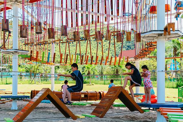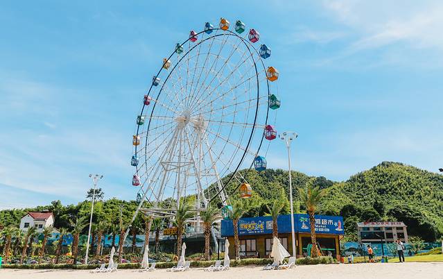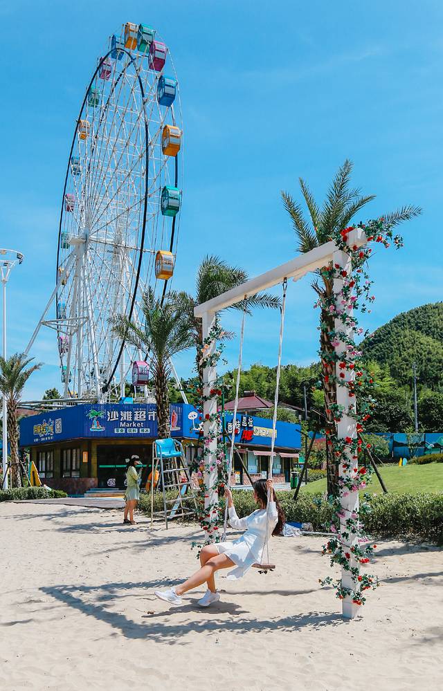 沙滩乐园包含阳光沙滩、摩天轮、荣耀之星、丛林迷宫、水上飞人、摩托艇、步步惊心桥等众多适合亲子游玩的项目。