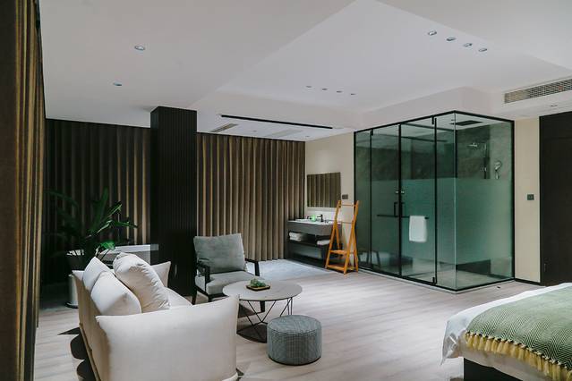 酒店位于山顶之上,也就是云端漂流的起点处,这里没有步履匆匆,没有喧嚣浮躁,有的只是湛蓝的天空、静谧的大自然,宛若远离尘嚣的世外桃源,酒店的设计风格让人眼前一新,大面积的落地玻璃设计,超大面积的室内空间,时尚简约的设计风格,自然柔和的光线布景,让人感觉格外的温馨。