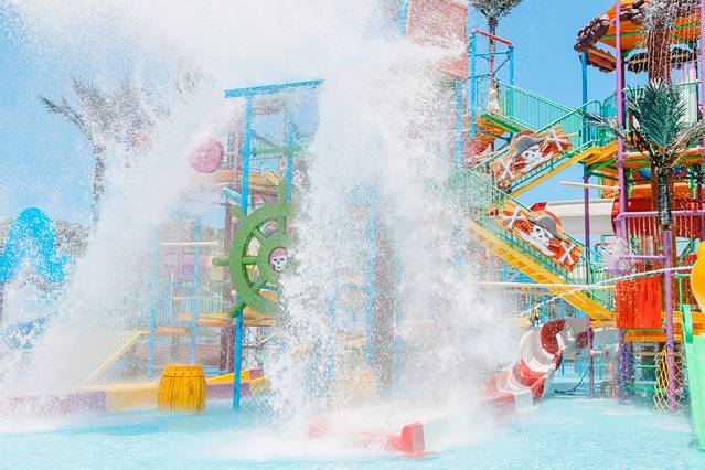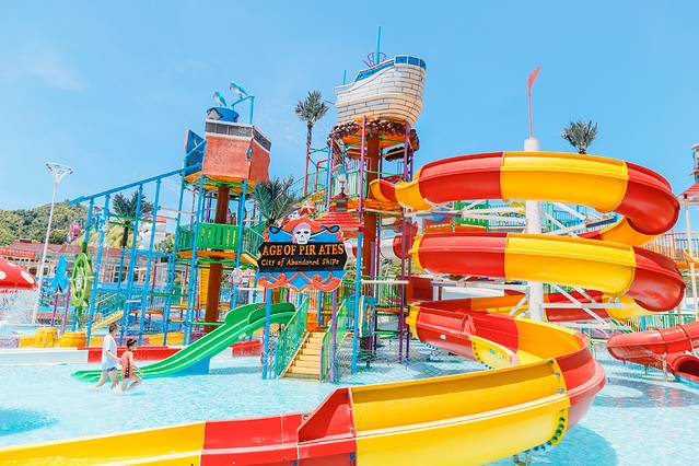 同时还有刺激的大水桶时不时“从天而降”“湿身”体验一触即发尖叫、嬉戏、打水仗...让海盗船风情水寨承包你这个夏天的快乐,还在等啥....拿上泳衣来这里畅嗨玩水!