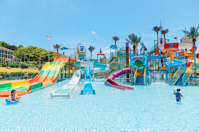 如果还在烦恼周末空闲之余带小朋友去哪里玩,这处宝藏级玩耍+遛娃地标一定要来,不管是大人还是小孩子都能玩的尽兴,这是个不一般的水世界,各种喷水设施应有尽用,包含欢乐水上城堡、网红桥、摇摆桥、独木桥、水上冲关桥、喊泉、小游船 等多种水上项目,水寨里面有12条大大小小的滑滑梯随心选择。在这里,你不用在担心水质好不好,采用的一级水处理技术,亲们,提上泳装,和高温说拜拜。