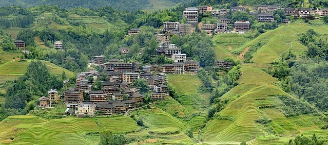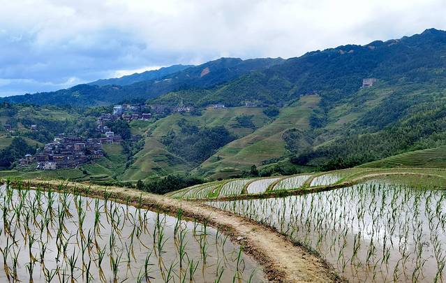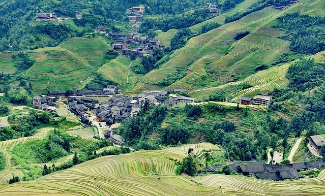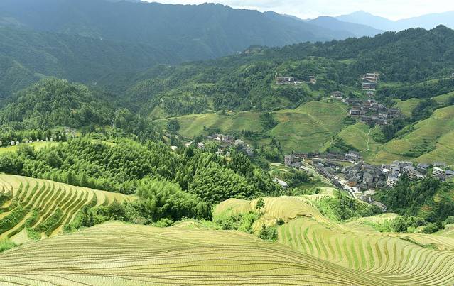 龙脊梯田景区面积共66平方公里,梯田分布在海拔300至1100米之间,坡度大多在26至35度之间,最大坡度也达到了50度。