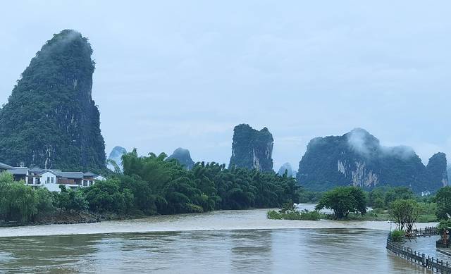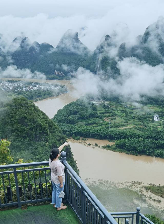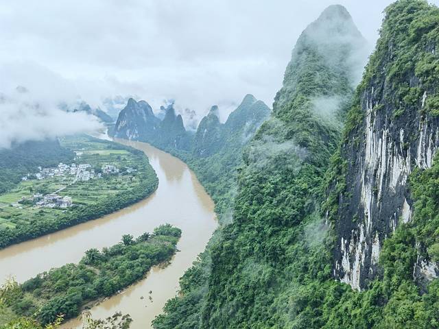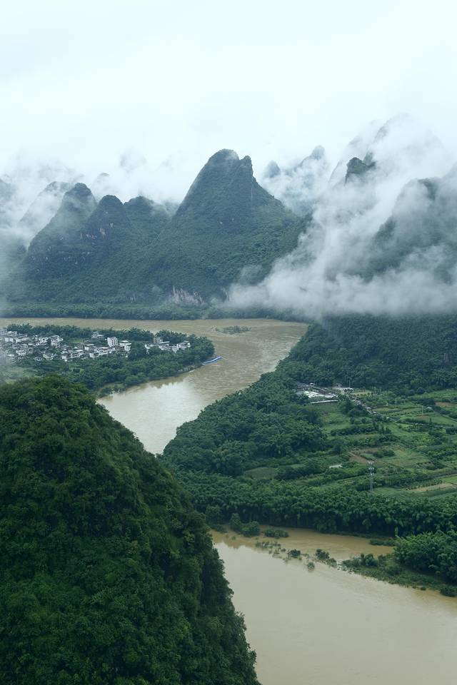 第一天到达,在酒店房间的阳台上俯拍漓江