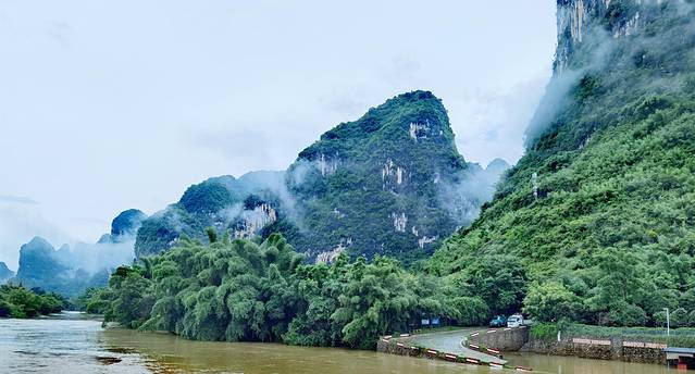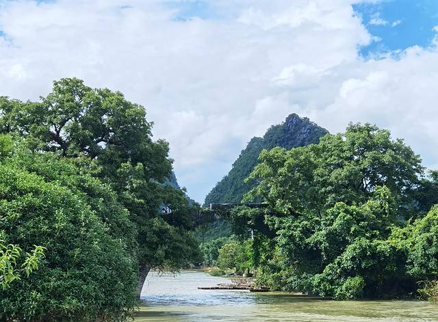 遇龙河是漓江在阳朔境内最长的一条支流,全长43.5公里,流域面积158.47平方公里,流经阳朔县的金宝、葡萄、白沙、阳朔、高田等5个乡镇、20多个村庄,人称“小漓江”,不是漓江胜似漓江。如果把漓江比成“大家闺秀”,那么遇龙河则是让人怦然心动的“小家碧玉”。遇龙河主要游览景点有:富里桥、遇龙桥、归义古城遗址、仙桂桥、旧县民居群以及“小漓江”风光等。