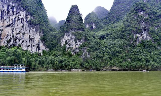 第三天我们的行程相对来说是比较轻松的,就是从桂林市区到阳朔兴坪古镇,然后从兴坪码头登游船游览漓江两岸最最经典的山水风光,全程往返的游览时间大概是一个半小时左右,包括僧尼相会、美女照镜、八仙过江、玉兔饮水、鲤鱼拦江、骆驼过江、二十元人民币图案取景地等等景点。