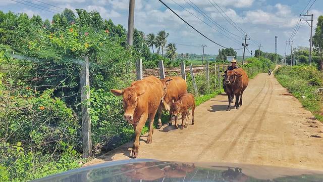 一路跟着手机导航的提示,跨过粤海铁路的铁轨,慢慢悠悠向前开。与成群结队的山羊、拖家带口的黄牛不期而遇,复杂的路况一定要更加集中精力,虽然买了保险也还是要注意安全哦!