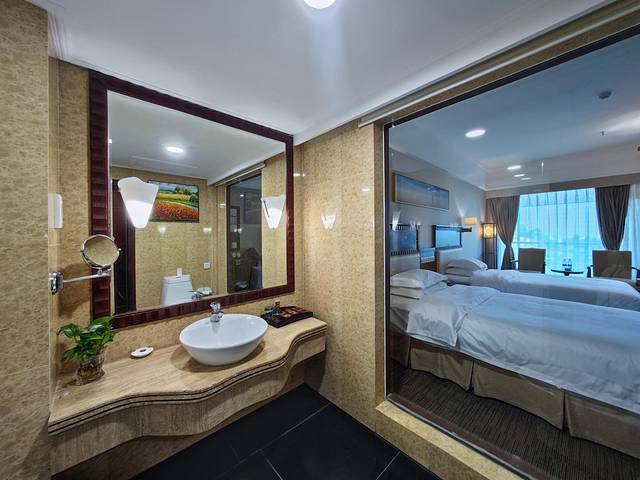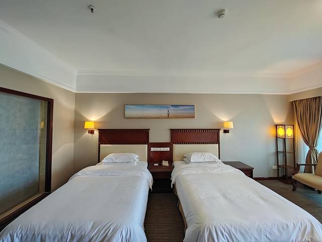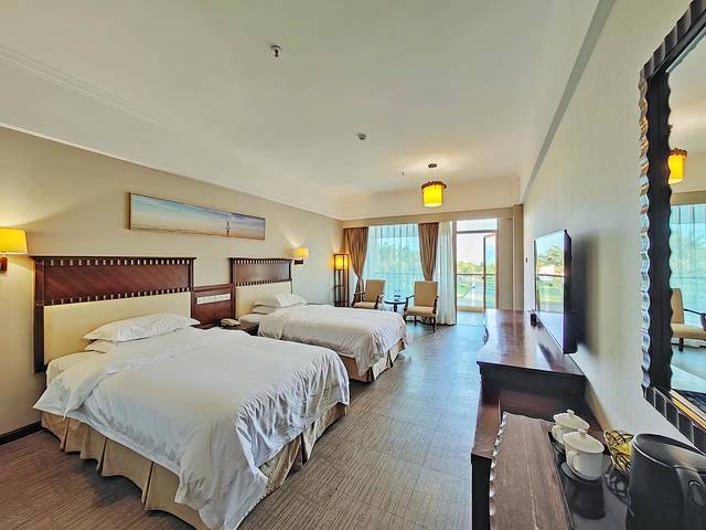 128间设施齐全的海景客房和别墅套房景观一级棒,满眼琼州海峡的碧波浩渺,天气好的时候还能远眺海口群楼呢!