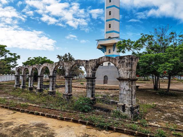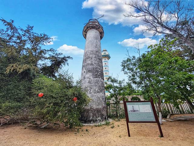 据《中国航标史》记载,1894年清政府海关总税务司署出资,由英籍工程师韩德善与哈而定主持建造灯楼角灯塔,命名为“关尾灯塔”。那座灯塔是雷州半岛第一座航海灯塔,曾在黑夜里指引了无数船只航向。可惜在1941年因抗战需要被拆除。目前,在新灯塔旁边的那座矮一点旧一点的石砌圆形灯塔是1979年改建的。