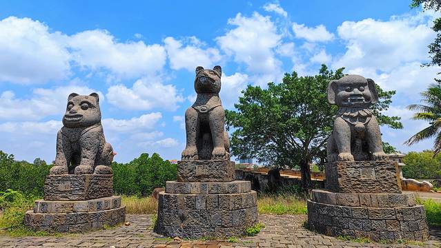 雷州石狗:和国内常见的狮子、龙、麒麟、貔貅等图腾不同,粤西独宠石狗。作为雷州半岛地区独一无二的民俗文化,有“南方的兵马俑”之称的雷州石狗是一份独具地方特色的珍贵文化艺术遗产。大汉三墩旅游区里现存的这三座石狗可是目前广东地区发现的最大石狗哦!