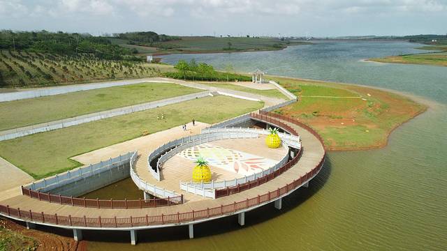 田洋玛珥湖:作为3050平方千米的中国雷琼世界地质公园的一部分,面积20.3平方千米的田洋景区(青桐洋干玛珥湖—田洋干玛珥湖“菠萝的海”)是火山地质遗迹和火山农耕文化相结合的。形成于距今约48万年前的中更新世的田洋干玛珥湖与大片的菠萝田园风光,构成了一幅美丽而独特的田园画卷。