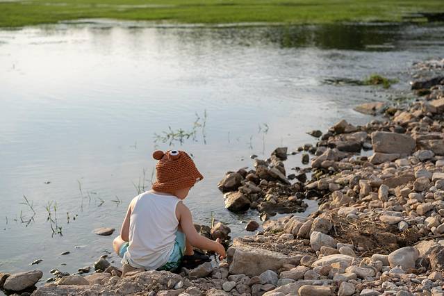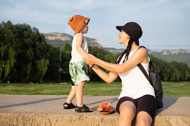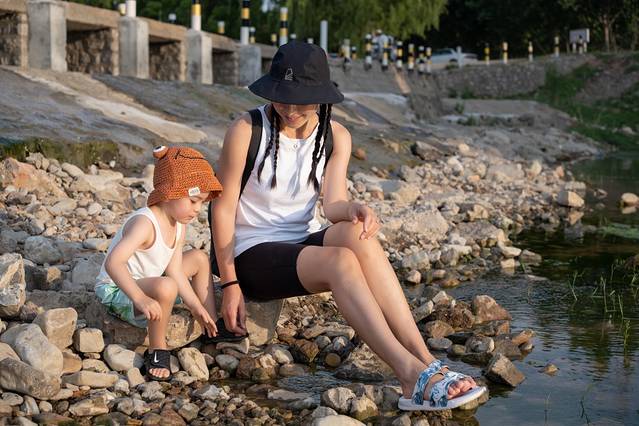 小朋友把脚丫泡在水里,一边看着风景一边啃着西瓜,自由自在的。希望在他无数个关于夏天的记忆里,也有关于这一天的……